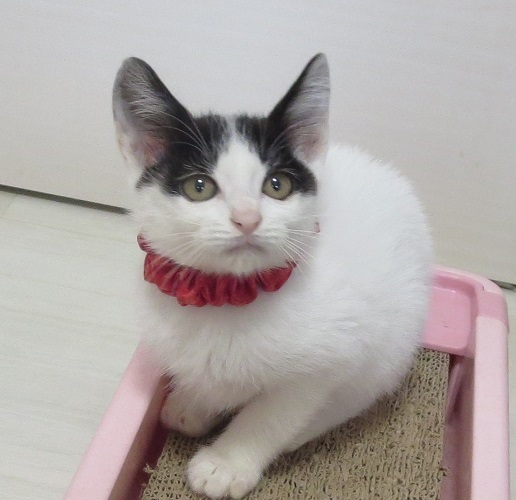 | 特徴(性格など) | 保護した時点では、積極的に食べに来て保護しやすかった子なのですが、保護してみるととりわけ小さくて赤ちゃんみたいでした。 お母さんネコも小柄な白ネコさんですので、子供達も小柄なのでしょうが。 あられちゃんも最初は大変に逃げ隠れしていたのですが、いつの間にかすごい甘えん坊になってしまって、今では勝手に膝に乗って来るくらいです。 身体も小さいし甘えん坊ですので、時間その他にゆとりのある方とのご縁を希望しています。 |