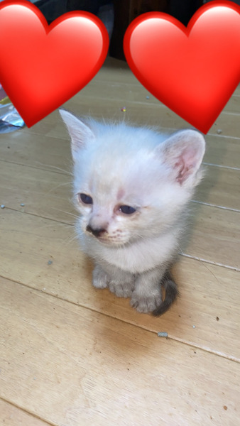 | 特徴(性格など) | 耳と尻尾が黒や灰色で 体は白です! 顔の中心が黒くなってくると思います! |