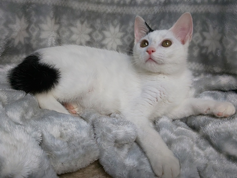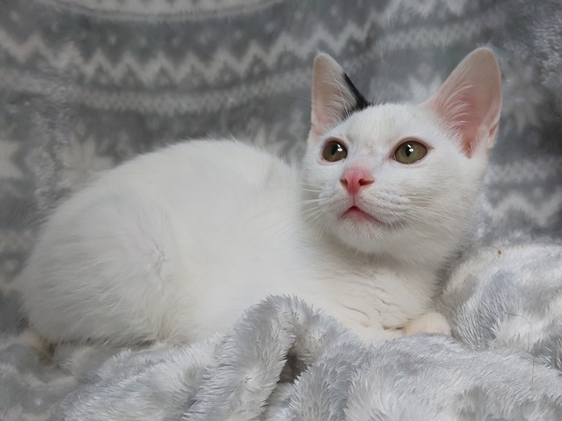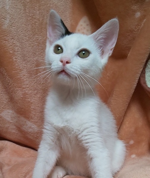 | 特徴(性格など) | 【仮名】フラットくん 【性格】マッシロ毛に耳とシッポと背中にちょこっとだけ黒いフラットくん♪ 意外や意外!イケメンなんですよ(笑) 保護当初はまぁシャーシャーでしたが最近ではゴロゴロ言うようになって ベタ馴れにゃんこまであと一歩です♪ 抱っこもOK♪よく遊びます♪ フラットくんとゆっくり向き合って頂ける 里親さんにお願いしたいと思います。 ※1ピキ譲渡可 |