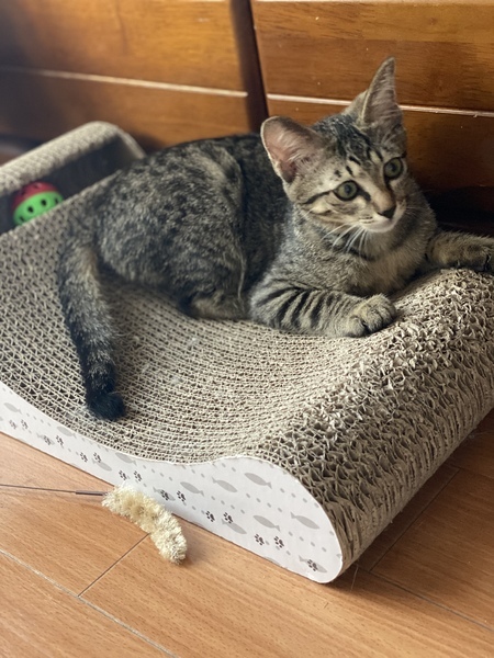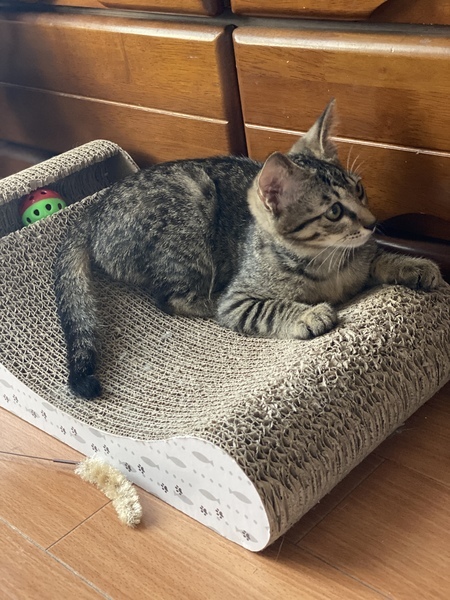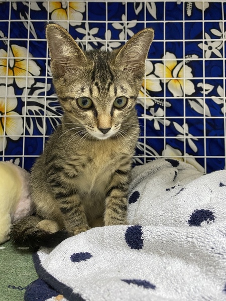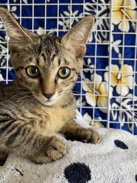 | 特徴(性格など) | エジプト顔のスポテッド柄の綺麗なしっぽの長い男の子の猫ちゃんです。 生後約4〜5ヶ月くらいだと思います。 耳も大きくシュッとしたお顔立ち。 保護猫のため、まだ人間に甘えることはないですが、うちにいる猫をみると甘えて一緒に遊ぼうとします。 まだ、少し人間の環境に慣れてないので、臆病な面もあります。 トイレも上手にできます。ご飯もしっかり食べます。 |