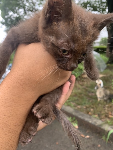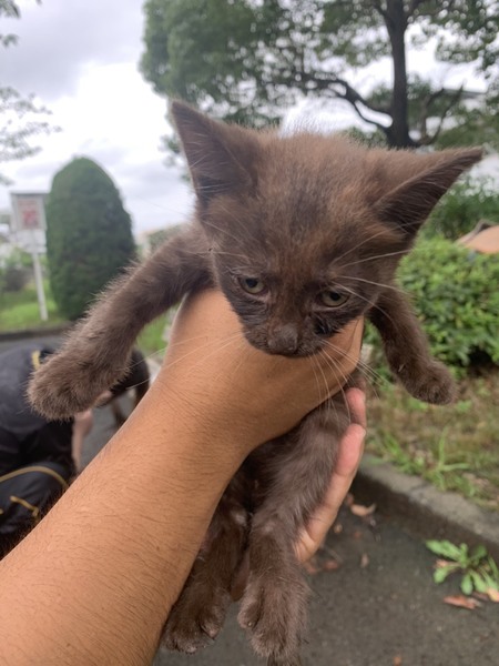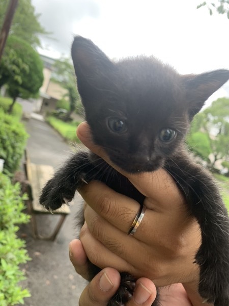 | 特徴(性格など) | 黒猫→生後1ヶ月くらいです。 まっすぐ尻尾のメスで人馴れしています。 足音がすると走ってついてきます。 キジ→生後1ヶ月くらい。 柄がはっきりとしているメスで、雑種とは思えないくらいきれいです。黒ほどではありませんが人馴れしています。 こげ茶→生後1ヶ月半から2ヶ月 メスだったと思います。黒やキジと違って 人にはあまり慣れていません。 ただ接していくうちにすぐ慣れると思います。 3匹の子猫たちの性別の確認の際、ノミとシラミがいました。 |