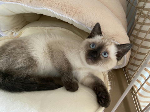 | 特徴(性格など) | 仮愛称:「マリヤ」と名付けました。 性格:人なつこく子猫たちとも仲良く遊んでいます。 医療面:健診済み・検便(-) 血液検査済み(エイズ・白血病ともに陰性) ブロードライン済み ワクチン接種済み その他:健康状態は良好です。 譲渡済みでしたが、子供さんにアレルギーが発症した為、引き取り 再度、里親さま募集に至りました。 |
