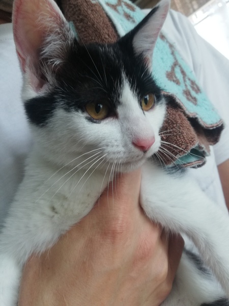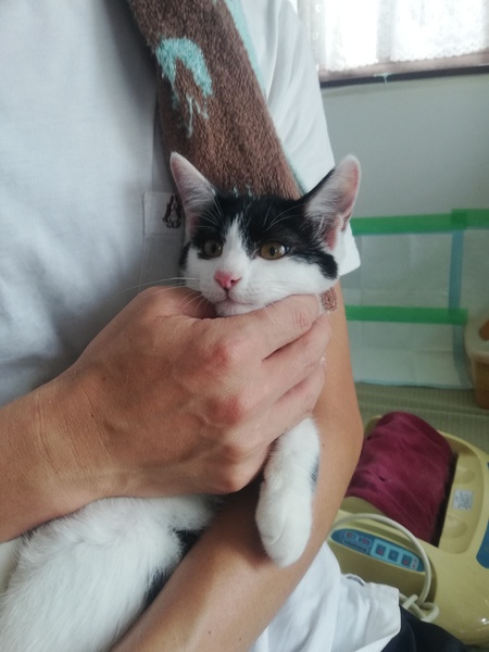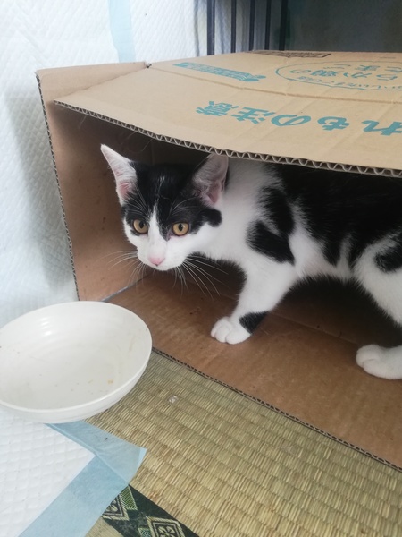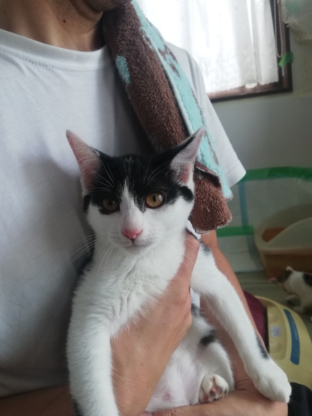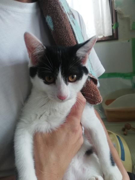 | 特徴(性格など) | 模様は白黒です。 若干怖がりかなぁと思いますが、それでも家の中を元気に駆け回ります。すぐに慣れると思います。 保護したときに風邪を引いておりましたが、現在は完治しておりす。 |