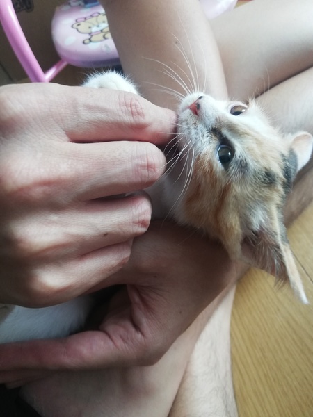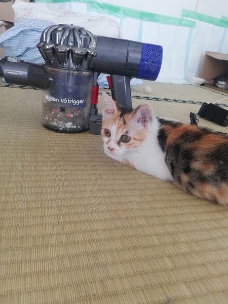 | 特徴(性格など) | 三毛です。 保護した時は風邪を引いており目がつぶれかけ、一時は死ぬかもしれないと思いましたが、なんとかもちこたえ、今は回復していっております。現在は少しくしゃみをするくらいです。 治療中ですが、ご飯もたくさん食べ、元気に遊びます。特に人を怖がることもなく、可愛い子です。 エイズ、白血病陰性です。 |