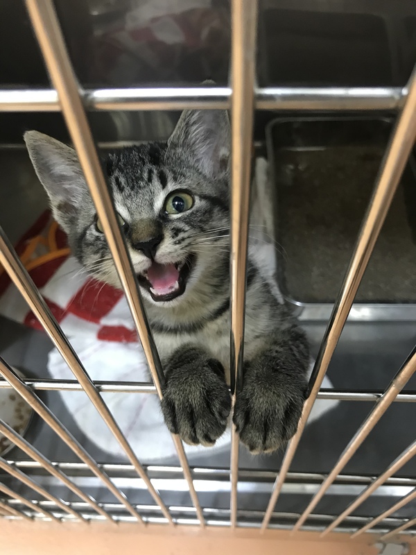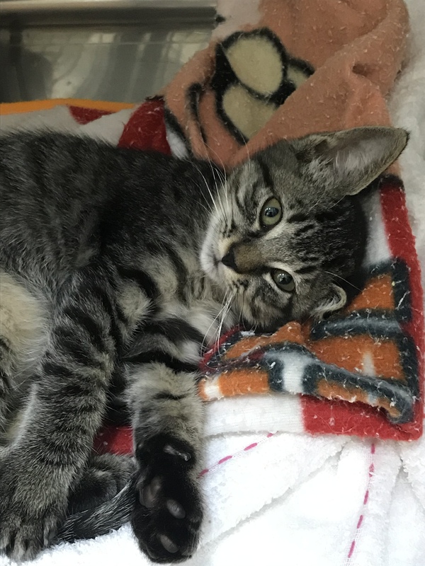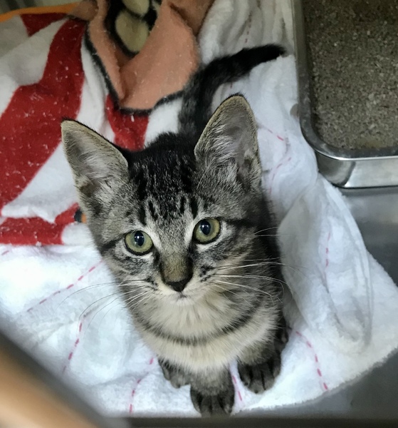 | 特徴(性格など) | 黒っぽいキジトラ 尻尾まっすぐ 金色の目(ちょっと緑がかってます) 抱っこするとすぐにゴロゴロ言ってくれる可愛らしい子です。 人の顔をよく見てきます。 手が大きいのがチャームポイント。 遊ぶの大好き。 3姉妹でしたが、他の姉妹は先にご縁がありました。 |