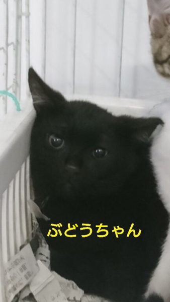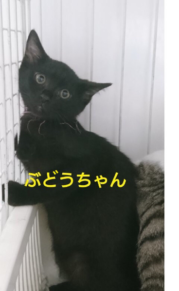 | 特徴(性格など) | 仮名「ぶどうちゃん」 ワクチン済み、駆虫済み、ウイルス検査白血病、エイズ共に陰性 黒の女の子。 兄妹の中では一番のビビり屋さん。 攻撃性などは全くありませんが、人が近づくと隅で固まって兄妹の後ろなどに隠れてしまうぶとうちゃんです。 抱っこはしてあげられるので、家庭に入ってゆっくりと向き合ってもらえれば、まだ月齢も低いので徐々に心を開いてくれると思います。 今の時点では、小さいお子さんのいるご家庭はストレスになりやすいと思うのでご遠慮下さい。 月齢的には1匹での譲渡も可能ですが、兄妹と一緒に迎えてもらえたらビビりのぶとうちゃんのストレスも軽減するのかと思っています。 C309309のパインくん C309310のライチくん C309313のいちごちゃん C309314のりんごちゃん C309315のあんずちゃん と兄妹です。 |
