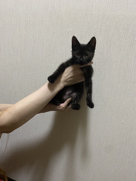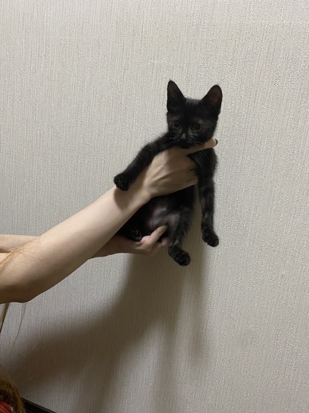 | 特徴(性格など) | 黒色女の子 元気いっぱいのやんちゃな子です おもちゃで遊ぶのが好きです ワクチンは1回目が終わっています(7/28現在) 猫エイズ・白血病共に陰性でした |