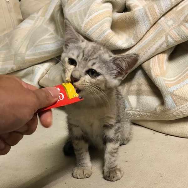 | 特徴(性格など) | サバシロのかわいい女の子です。まだちょっと人馴れしてませんが、少しずつ慣れてきています。 元気でおもちゃでよく遊びます。 健康状態 ・FeLV(猫白血病ウィルス)、FIV(猫免疫不全ウィルス)陰性 ・駆虫済 |