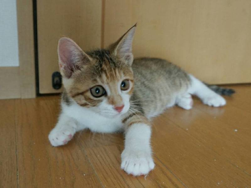 | 里親募集する理由 | 某運送屋さんの隣の敷地で野良猫のお母さんが産んだ子猫のうちの1頭です。 ドライバーさんが子猫たちをねこけんに届けてくださり、保護になりました。 |