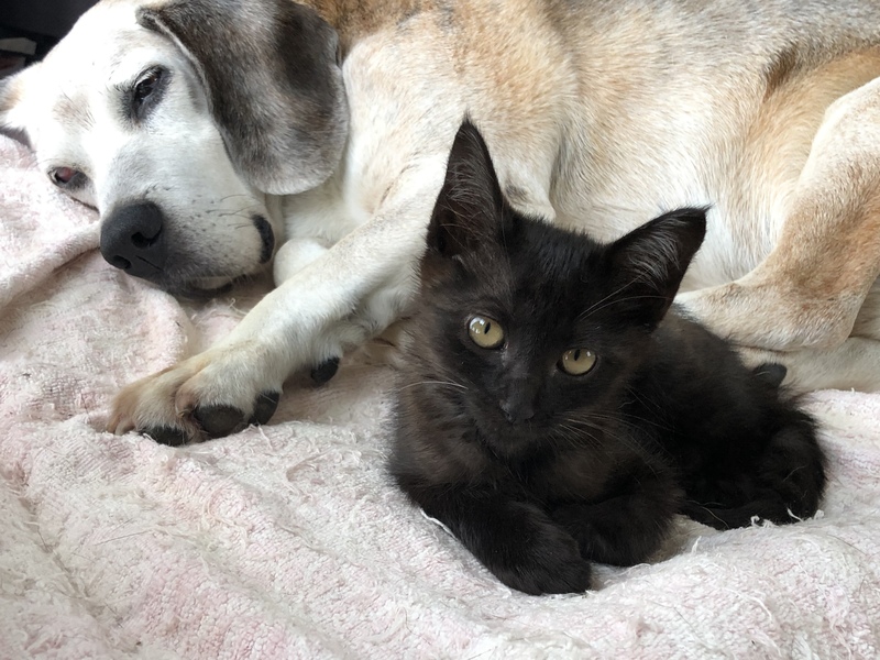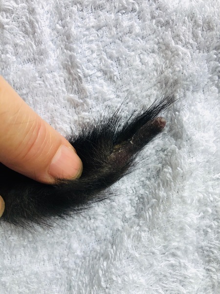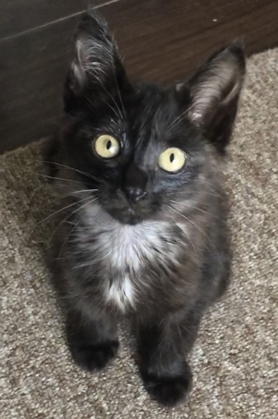 | 特徴(性格など) | べったりと甘えるタイプではありませんが、よく懐いています。うちの猫たちや犬にも慣れていますので、他の猫や犬のいるお宅でも大丈夫だと思います。 トイレ・爪とぎは、上手にできます。フードは、ドライフードを食べています。 全体的に黒毛、または、部分的にダークブラウンですが、根本を見るとグレーの毛が生えています。顔は、鼻筋がすうっと通った美猫です。首元は白くエンジェルマークがあり、背中は少し茶色が入っています。背中から腰にかけて、途切れたトラ柄のような模様があります。 尻尾の先2cmほど怪我していたのか、まだ少しかさぶたが残って、毛が生えていません。傷は治っていますが、この後、毛が生えてくるのかどうかは不明です。 黒猫は、『近代以前の日本では「夜でも目が見える」等の理由から、「福猫」として魔除けや幸運、商売繁盛の象徴とされ、黒い招き猫は魔除け厄除けの意味を持つ。』(Wikiから)らしいです。ありがたい可愛い黒猫ちゃんです。 |