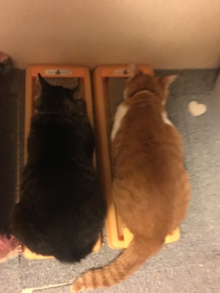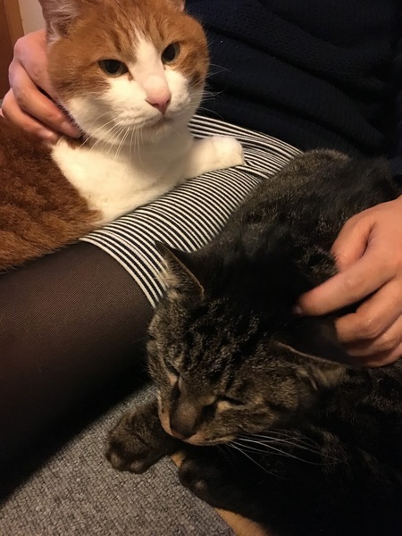 | 特徴(性格など) | 茶トラの「りく」はとっても人懐っこく、自分から抱っこされに来ます。 キジトラの「ふーちゃん」は臆病でこちらから寄ると逃げてしまいますが、撫でられることが大好きなので、座っていると自分から近寄って来ます。 |