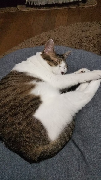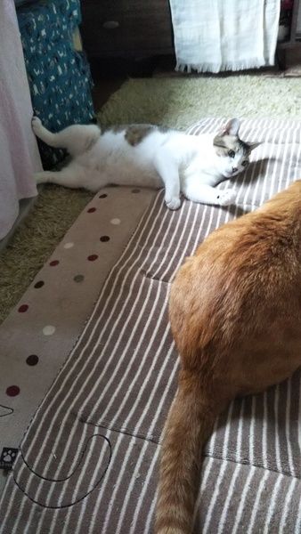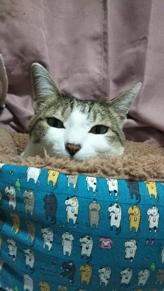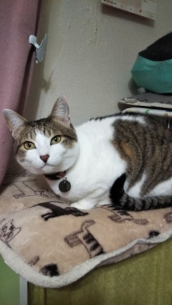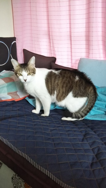 | 特徴(性格など) | サバシロ柄の女の子です。推定生後2ヶ月の時に突然我が家の庭にやってきて保護し、それからずっと完全室内飼育で暮らしています。他にも猫がいて猫にはなれています。特に大きい体の男の子が大好きみたいです。少し、ビビりな面もありますが、馴れれば甘えてきます。尻尾の付け根を軽くポンポンされるのが好きです。保護直後は行きつけの獣医さんに診てもらってまして、エイズと白血病は陰性です。健康状態も全く問題ありません。病気はしたことありません。 | ||