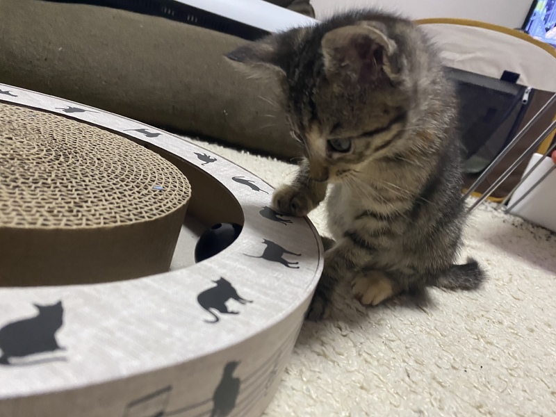 | 特徴(性格など) | キジトラで元野良猫ですがすんごい美形です!! 性格は甘えん坊さんです。まだ、3ヶ月目に入ったばかりの子猫なのでお遊びは大好きですがお留守番もトイレもしっかりできる子です! |