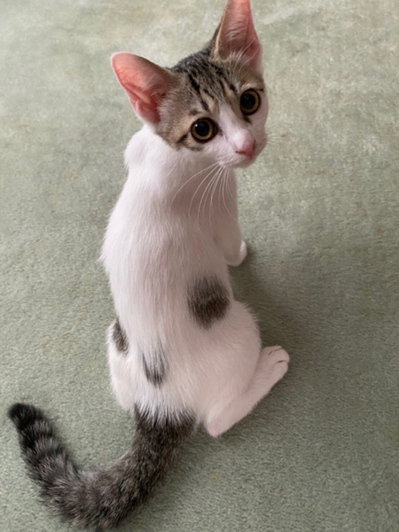| 特徴(性格など) | ☆☆☆ご希望の方は、以下のアンケートフォームにご記入の上、送信してください☆☆☆ ねこ親希望アンケート→ http://chibawan.net/contactform_cat 【猫No】3123 【愛称】もん 【性別】メス 【年齢】推定3ヶ月(20/04下旬頃生) 【毛色】白キジ 【体重】1.7㎏(07/30現在) 【状態】不妊手術、マイクロチップ、血液(ウイルス)検査(8/6予定)、ワクチン1回済(2020/6/26)、ノミ・ダニ駆除済、検便済、トイレ躾済 【預かり場所】神奈川県川崎市 【日記】renhana7(インスタグラム) https://www.instagram.com/renhana7 【経緯】千葉県動物愛護センターより引き取り 【性格】元気いっぱいおてんば娘です。やや気が強いところがあり、お気に入りのおもちゃは誰にも渡しません。人にも猫にも甘えん坊です。同じ年頃の猫とも遊べますし、年上の猫とも上手に付き合えます。 【補足事項】『するめ』と兄妹です。不妊手術、マイクロチップなどの医療処置が済んでからのお届けとなります。 【その他】子猫のためお留守番がない(短い)ご家庭を希望します。 愛情いっぱいの終生飼養、ネコにあった生活スタイル、完全室内飼育、定期的なワクチン接種などの健康管理をお約束いただけ、迷子防止に細心の注意を払ってくださる、関東近県のご家庭でアンケートに快くお答えいただける方からのお問い合わせをお待ちしています。 なお大変申し訳ありませんが、単身の方や同棲カップル、主にお世話してくださる方がご高齢の方のご家庭である場合のお申し込みにつきましてはお断りさせていただきますので予めご了承ください。 |