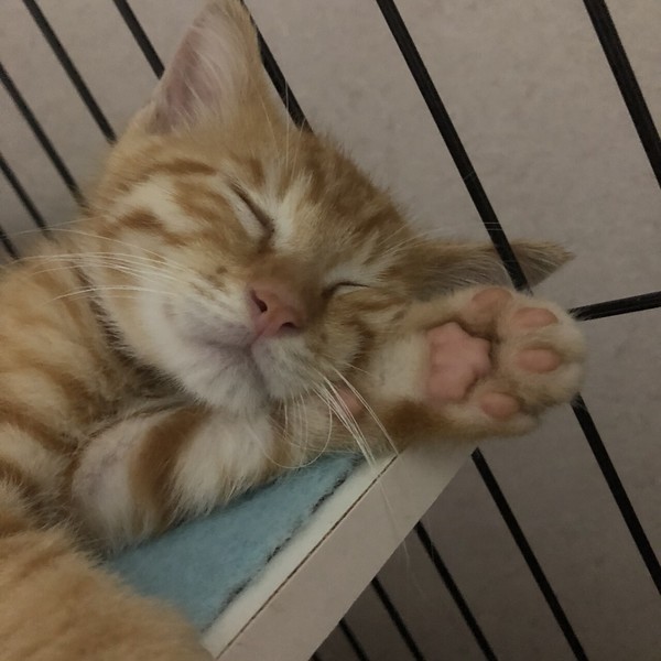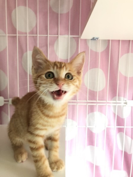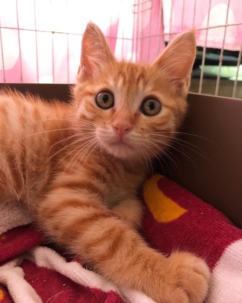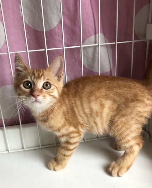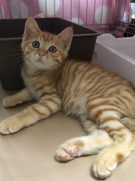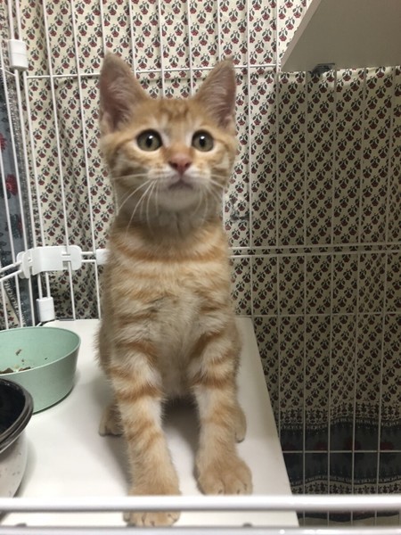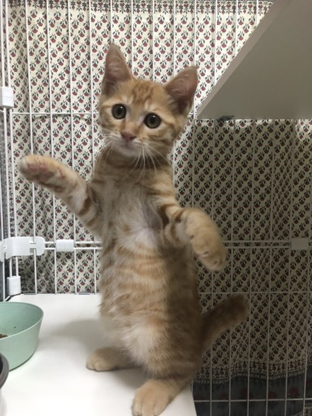 | 特徴(性格など) | 2020.5.20生まれ(推定) 毛色:茶トラ たった一人で頑張っていた、小さな茶トラの男の子。 とても甘えんボーイで、人が大好き♡ はじめはモジモジしちゃうけど、なれてくると大きなゴロゴロ音で甘えてきてくれます。 ムチっとした触り心地が最高♡ 遊ぶ時は、男の子らしく元気に走り回りとても楽しそうです。 たまに立ちます(笑) 甘えん坊のガンバと、ずっと一緒にいてくれる家族を募集します。 よろしくお願いいたします。 |