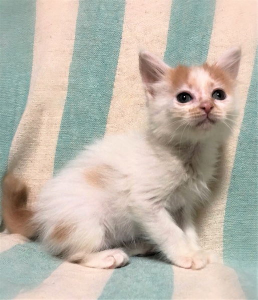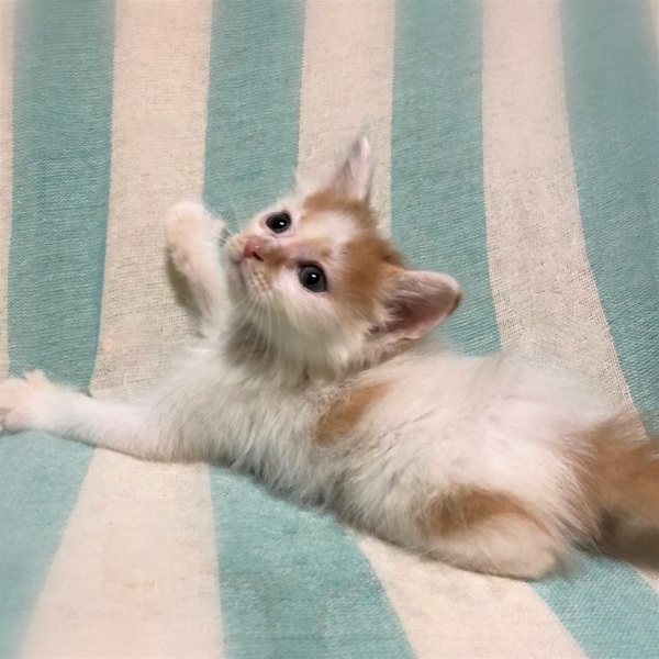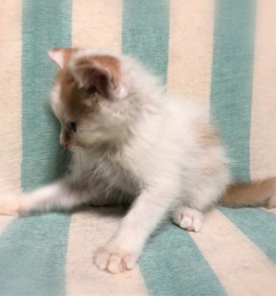 | 特徴(性格など) | 仮名、こぽん 柔らかいふわふわ被毛・茶白の女の子 シッポの形がゝ 気合いと運動神経がかみ合っていない、ちょっと面白い子です。何かを追いかける前に必ず上に一度ジャンプしてから走り出します。 人には甘えん坊で、目薬の後「いやだなぁ・・」の表情をしながら小さくゴロゴロが聞こえていたりします。 |