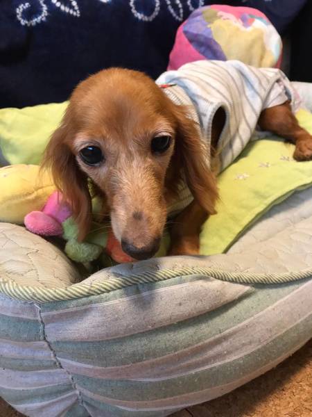 | 特徴(性格など) | ◆預かりブログ◆ ※ ご応募前に必ずお読み下さい。 https://ameblo.jp/cocomitchy/theme-10113049791.html 『20SR-42』カニンヘンダックス♀きらら ◆特徴◆ 【保護経緯】繁殖犬引退の為レスキュー 【保護日】2020.7.26 【仮名前】きらら 【性別】メス 【犬種】ミニチュアダックスフンド 【年齢】推定9歳〜 【毛色】レッド 【体重】2.98kg ◆性格・日常◆ 【性格】穏やかで控えめに甘えてきます。 【トイレ】トレーニング中 【お散歩】トレーニング中 【留守番】ケージで出来ます。 【就寝時】ケージで就寝出来ます。 【お手入れ】シャンプー、耳掃除、爪切り、肛門腺絞り等大人しくできます。 【犬との関係】攻撃性ありません。 【猫との関係】攻撃性ありません。 【人との関係】控えめにアピールして撫でてもらうのが好きです。 【その他】 ◆これまでに行った医療◆ 【混合ワクチン】済み 【血液検査】問題なし 【体内寄生虫】陰性(駆虫薬投与済み) 【耳ダニ検査】陰性 【避妊去勢手術】済み 【スケーリング】済み(抜歯) 【マイクロチップ】挿入済み 【体外寄生虫】アドボケート投薬済み 【その他】保護時に口腔状態が悪く下顎が溶けています。殆ど抜歯していまが、日常生活に問題ありません。 ◆今後行う予定の医療◆ 特になし ◆必要な継続医療◆ 特になし ◆預かり場所◆ 神奈川県横浜市 ◆譲渡範囲◆ 神奈川県、東京都、千葉県、埼玉県、静岡県 (神奈川県横須賀市〜2時間以内) |