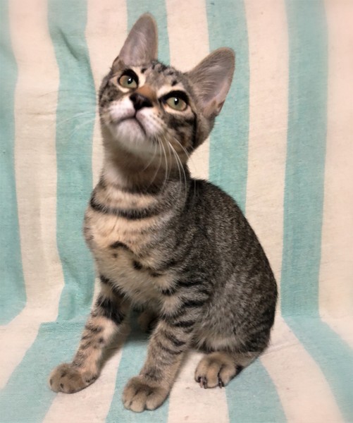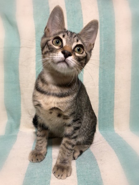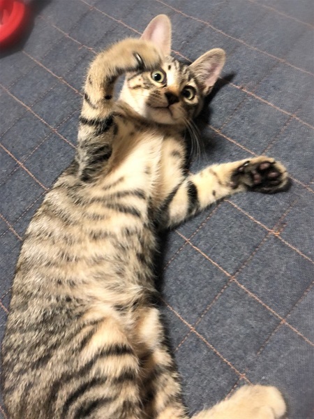 | 特徴(性格など) | 仮名、じゅうわり やや黄色味のかったキジトラ男の子 新しい環境に慣れるのに数日必要です。 好奇心旺盛で、いつも楽しそうな表情でワクワクしています。 運動神経も良く、高い所もスイスイ登って行きます。 また愛想の良い子で、遊びに夢中な時も撫でるとゴロゴロ反応してくれます。 |