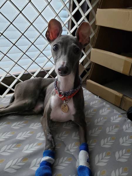 | 特徴(性格など) | ◆預かりブログ◆ ※ ご応募前に必ずお読み下さい。 https://ameblo.jp/coconeel-azu/theme-10112840529.html 『20SR-30』イタグレ♀さくら ◆特徴◆ 【保護経緯】繁殖屋放棄の為レスキュー 【保護日】 2020.6.24 【仮名前】 さくら 【性別】 ♀ 【犬種】 イタリアングレーハウンド 【年齢】 推定1歳 【毛色】 ブルー×ホワイト 【体重】 4.3kg ◆性格・日常◆ 【性格】怖がりな面もありますが、子犬らしく天真爛漫です。 【トイレ】 シート認識あります。 【お散歩】 トレーニング中 【留守番】 ケージで出来ます。 【就寝時】 ケージで就寝出来ます。 【お手入れ】シャンプー、耳掃除、爪切り、肛門腺絞り等大人しく出来ます。 【犬との関係】攻撃性ありません。 【猫との関係】攻撃性ありません。 【人との関係】初めは警戒しますが、慣れると男女問わず人懐っこいです。子供に対しての反応は分かりません。 【その他】主にお世話される方が55歳以下、2名以上。 ご自身でサイトハウンド飼育経験のある方。 お留守番の短いご家庭。 ◆これまでに行った医療◆ 【混合ワクチン】済み 【血液検査】 問題なし 【体内寄生虫】陰性(駆虫薬投与済み) 【耳ダニ検査】陰性 【避妊去勢手術】 【スケーリング】 済み(抜歯) 【マイクロチップ】 【体外寄生虫】アドボケート投薬済み 【その他】保護時より右前脚骨折あり癒合不全。患部の状態が悪く現在抗生物質投薬中。 保護時より耳・尾・四肢先端欠損。 ◆今後行う予定の医療◆ 避妊・マイクロチップ ◆必要な継続医療◆ 右前脚骨折箇所の経過が悪く、抗生物質投薬。詳しくはお尋ねください。 ◆預かり場所◆ 神奈川県横須賀市 ◆譲渡範囲◆ 神奈川県、東京都 (神奈川県横須賀市〜1時間以内) |