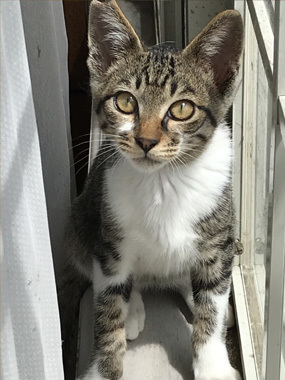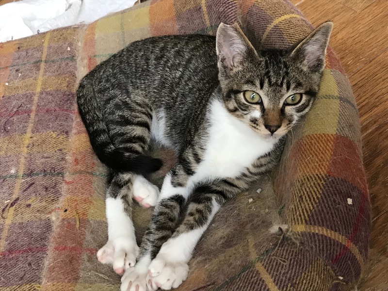 | 特徴(性格など) | とってもハンサムなキジ白にゃんこです。 好奇心旺盛でとっても元気な子猫です。 多頭の場所にいたためか、他の猫が大好きで、我が家の先住猫に甘えています。 先住猫さんのいるおうちの方が馴れるのが早いかも。 |