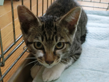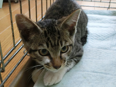 | 里親募集する理由 | お友達から、近くの神社の隣の家に餌やりをしているおばあさんがいて、おばあさんの家と神社の敷地内に猫がわんさかいると連絡がありました。見に行くと、成猫の他に3~4か月くらいの子猫が10匹近く! 草ボーボーで環境の悪いところだったので、保護しました。そのうちの1匹です。 我が家ではすでに3匹猫を飼っていますので、終生かわいがってくださる里親様を募集いたします。 |