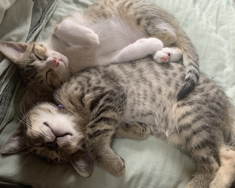 | 特徴(性格など) | ゴロゴロ甘えたな姉妹猫。 どこへ行くのも後を追って付いてきます。 外へ行くと窓から高い声でニャンと鳴いてくるのでとても可愛いです。 一匹がどこかへ行くと探し回るくらい寂しがり屋さんなので夜は一緒に寝てあげて下さい。 |