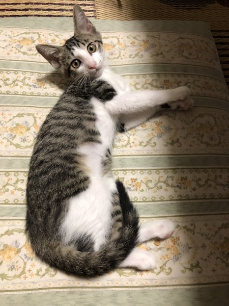 | 特徴(性格など) | ★☆諸事情により、当サイト内でのお申し込み、およびご質問は受け付けておりません☆★ 以下をお読みになり、お申込みはリンク先からアンケートご回答にて、または里親会会場でお願いいたします。 【アンケートリンク先】 ・犬 http://goo.gl/WVZTIW ・猫 https://goo.gl/ZNRFtI また、ご質問・お問い合わせはおーあみ避難所里親さま募集係までメールでお送りください。 【お問い合わせ先】 ooamishelter.boshu@gmail.com 里親さま募集係 お手数をおかけしますが、どうぞよろしくお願いいたします。 --------------------------------------------------------- ◆レモンパイちゃん ●月齢の小さな子猫のため、以下の条件についてご了承の上で応募をご検討下さい。 ◆60歳以上の方の子猫のお申し込みはお断りさせて頂きます。 ◆お留守番の少ないご家庭を希望します。 ◆2匹を希望か、もしくは2歳までの先住猫のいるご家庭を 優先させていただきます。 ◆小さなお子様のいるご家庭は状況により お断りする場合がございます。 ○世田谷区内で保護されました。 ○生後3ヶ月半くらいのキジ白ハチワレ女子、美人さんです。長い尻尾がチャームポイントです。 ○おしゃべりでお転婆な女の子です。 ○人慣れ訓練中でしたが、なでなで大好きでお膝の上で甘えたり、頭突きしてゴロゴロ言ってくれたり、夜も人間のお布団に一緒に寝にきてくれる甘えん坊さんになりました。 ○同じく里親募集中の「アップルパイ」「ミートパイ」とは兄妹です。 ○とても元気な子で、兄弟のアップルパイとよく走り回りプロレスしたりしています。 ○猫じゃらしやおもちゃ大好き! ○大きな猫も大大大好き!大人の猫にも甘えたい甘えん坊さん。 ○大きな音や声は苦手です。 ます。 ○まだ小さな仔猫のため、お留守番の少ないおうちをお待ちしております。 ★ワクチン2回済、駆虫済。 ★猫エイズ、猫白血病ともに陰性。 ★不妊手術は発育と体調をみて適宜おこないます。 ★★お見合いを設定することも可能です。まずはお申込みください★★ |