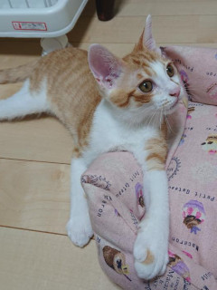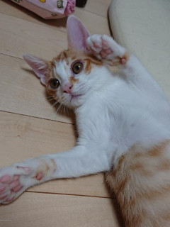 | 特徴(性格など) | 仮名を『いつき』と言います。 茶白の男の仔です。 TNR現場で保護されました。 好奇心旺盛で相手が猫でも人でも犬でもすぐ寄ってきて、手でチョンと触って確かめるのです。 大好きなオヤツが出ると、僕のだよと手でグイグイ引き寄せら。お手てが可愛いいつきくん。 人見知り場所見知りほとありません。 預かりボランティア宅のワンちゃんとも上手く共生していて、慎重なところがないのが、いつきくんの魅力ですよ。 右目が涙目になりやすいのですが、室内での日常生活に支障なく、快食快便元気に過ごしています。 別番で募集中の仲良しの『なお』や、他の仔と二頭一緒のお迎え、大歓迎です! 【医療処置情報】これから実施のも含まれます *健康チェック *3種混合ワクチン接種 (年1回定期的にしております。詳細はお見合い時にお知らせいたします) *ウイルス検査実施(FIV.FeLV共に陰性) *検便実施 *駆虫薬投与(レボリューション、ドロンタール) *マイクロチップ装着 *不妊・去勢手術 |