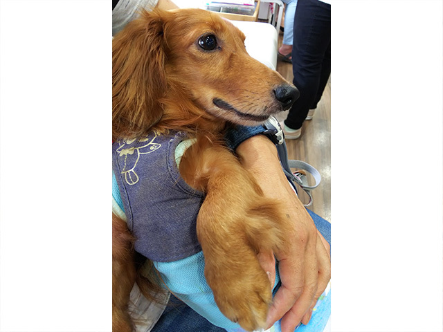 | 特徴(性格など) | ■ 基本情報 ・管理番号 【200626-21】 ・犬種・性別・名前(仮) Mダックス ♂ ロッキー ・年齢・体重 推定6~7歳 体重 5.2kg ・特徴 毛色は少し濃いめのレッドで 安心サイズの男のコです。 ・性格 温厚でおっとりしています。人懐っこく常に人のそばにいたい甘えん坊です。 ■ 暮らしについて ・日常過ごす場所 普段は室内フリーで過ごしています。サークルは苦手です。(吠えると思います) ・トイレ 室内のトイレシートでできます。時々 足を上げています。お散歩でもします。 ・散歩 大好きです。せわしなくチャカチャカと元気に歩きます。落ち着きがないので少し注意が必要です。 ・お留守番 フリーでしています。慣れるまでは吠えることがあります。 いたずらすることがあるので届く範囲に危険なものを置かないようにしてください。 ・外出 車内ではキャリーに入って大人しくしています。今のところ 車酔いはありません。 ・お手入れ シャンプーやブラシなど とても協力的ですが、歯磨きは練習中です。 ・他犬との関係 他の犬に興味津々でフレンドリーに接します。ヤキモチもやきますが、控えめです。 ・人との関係 人が大好きでそばにいればそれだけで満足する子です。初対面でお腹を見せるくらい人懐っこい甘えん坊です。 ・お願いしたいこと 逃走対策と床の滑り止めなど、ダックスに合わせた環境作りをお願いします。 前歯と奥歯しかないため、固いガムやおやつはあげないでください。 外方脱臼左右ともにG1、ヘルニア予防のためにも、体重管理をお願いします。 気管支が弱いため、咳や逆くしゃみの症状があります。 アトピー性皮膚炎とみられる症状もあるため、現在、お薬(アポキル錠)での調整と保湿ケアをしています。 今後も症状に合わせた治療やお手入れをお願いします。 人が大好きなのでお留守番が少なく、一緒に寝てくださる里親様を希望します。 ■ 医療管理について(実施日) ・混合ワクチン 〇 (6/26) ・狂病予防注射 × (近日接種予定) ・フィラリア抗原検査 - (6/26) ・不妊手術 〇 (7/14) ・マイクロチップ 〇 (7/14) ・健康チェック 〇 (6/26)(7/7) ・スケーリング 〇 (7/14) ・便検査 ・その他の医療措置 駆虫ドロンタール(6/26) フロントライン(6/26) スケーリング時に抜歯 ・必要な継続医療 気管支炎・アトピー性皮膚炎につきましては悪化しないよう定期的に検診をお願いします。 ・現在の一時預かり先 千葉県松戸市 ・預かりスタッフ マシュマロ ・預かりブログ ふわふわしっぽ☆ドキドキ預かりボランティア「ミニチュアダックス♂ロッキー」(2020/9/30~) ・https://ameblo.jp/shippo-chuuu/theme-10113614446.html ・移動前 預かりブログ まいにちわんこ(2020/7/17~9/30) ・https://ameblo.jp/pucchobikke/ ・引取時の様子 ・http://chibatarianna.jugem.jp/?eid=6512 |