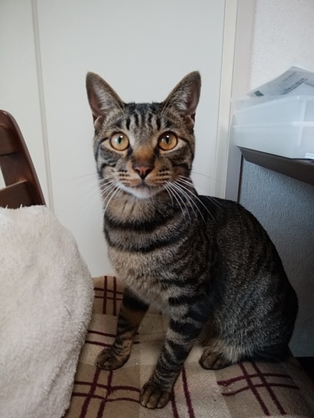 | 特徴(性格など) | 【猫の仮名】 大福 【毛色・柄】 キジトラ(担当者 桂) アメショー系の太い縞柄のキジトラ 長いしましましっぽ くっついて甘ったれるのが大好き。 なでなでするとすぐゴロゴロ言い始めます。 オモチャで良く遊んで穏やかな性格。 外出と帰宅時は、ちょこんと玄関でお見送りとお迎えをしてくれます。 少しおとなになってきましたが、まだ食いしん坊でササミが大好き♡ ひとりでお留守番もできますし、先にもらわれていったお姉ちゃんとも仲良しだったので、先住猫ちゃんがいても仲良くできます。 |