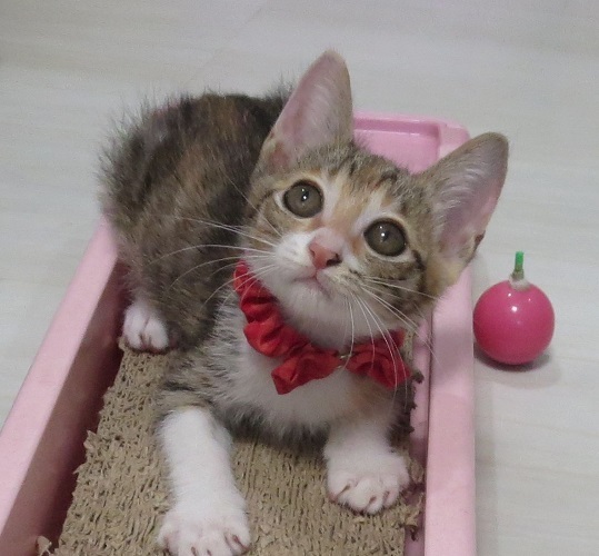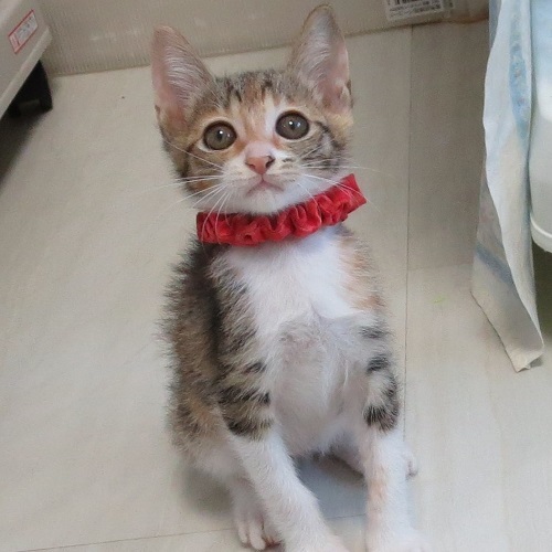| 里親募集する理由 | 長年にわたり庭でネコの一家にエサをあげていて、近隣にネコを供給している状態のお宅があり、そのネコ達の避妊手術のお手伝いを保健所さんから頼まれました。 そこで生まれていた子猫です。 |