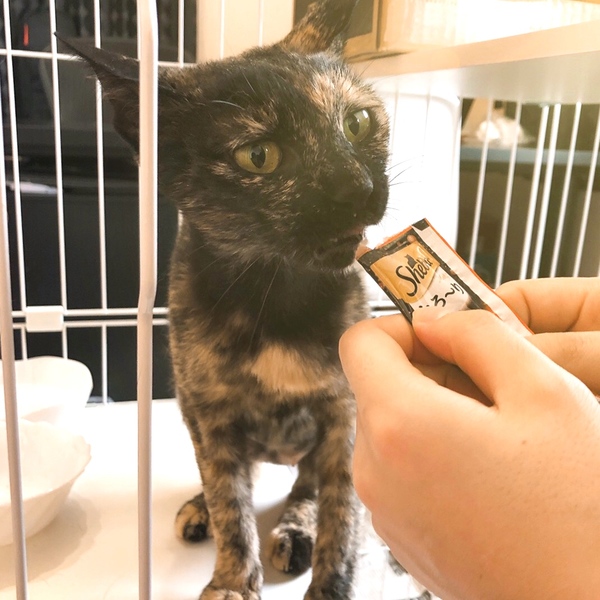 | 特徴(性格など) | 健康状態は良好です。 避妊手術済。 ワクチン摂取済。 ノミダニ駆除・駆虫済。 猫エイズ・猫白血病 陰性。 とっても人懐っこいです。 人間が大好きで姿を見ただけでゴロゴロすりすりして来ます。 お母さん猫とは言えまだ1歳半なので、人間の前ではこの子が子猫のように甘えて来て、あんよを踏み踏みしています(←母猫に子猫が甘える仕草です) ケージの中でもお利口さんにしています。 トイレの失敗もなく、ご飯も出されたものを食べ、用意してあげた段ボールベッドの中で寝ています。 |
