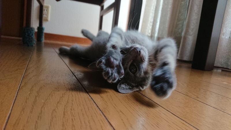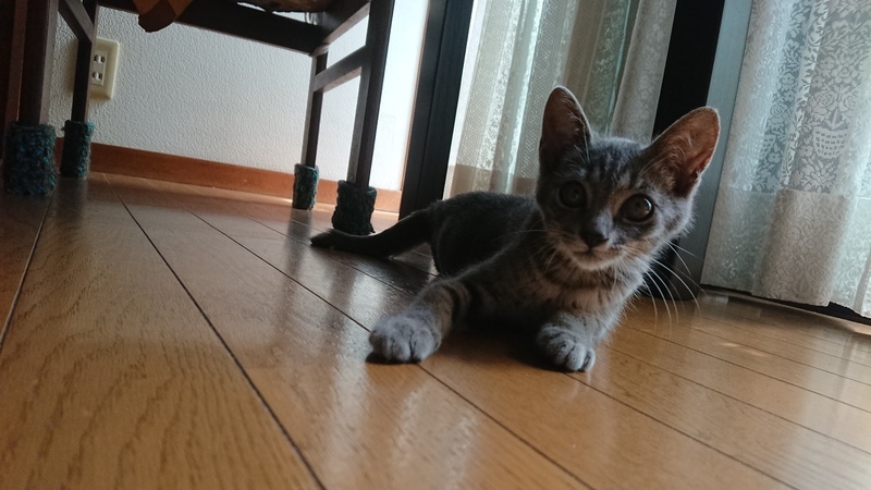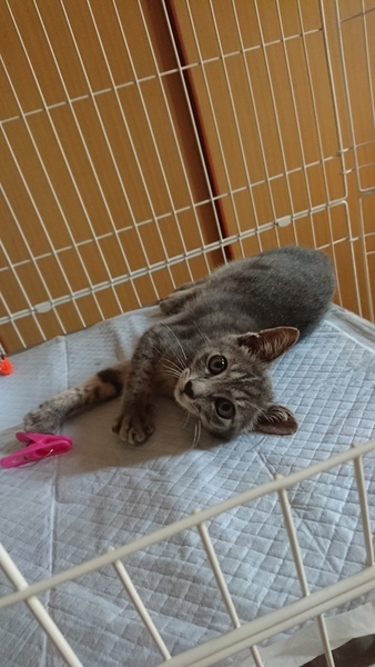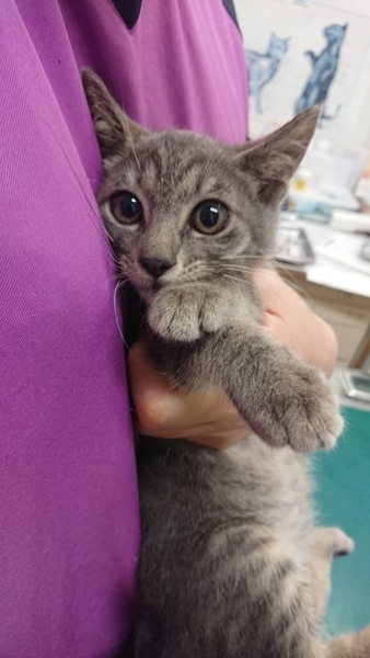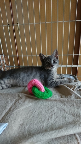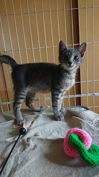 | 特徴(性格など) | ブルータビーのとても活発な女の子です♪ まだ人慣れは修行中ですが、おもちゃで遊ぶときはピョンピョン跳ねて限界まで動いています(笑) 抱っこすると大人しくなり、獣医さんでもお利口にできました。 Instagramアカウント 【graco0801】 |