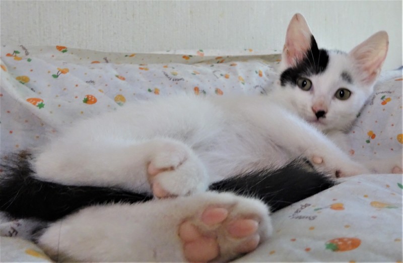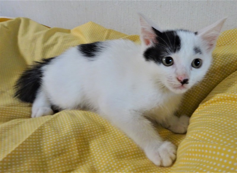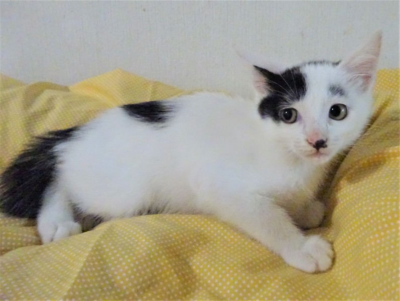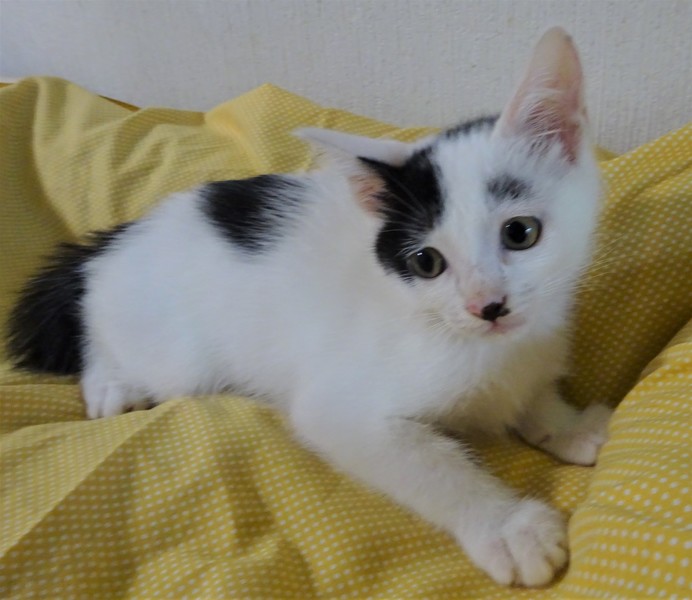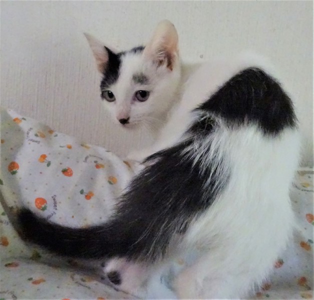 | 特徴(性格など) | 仮名: まろすけ君(オス) 毛色: 白黒、尻尾長い 性格: 初めて会ったときから抱っこ出来る子でした。 威嚇なし、攻撃性なしで人には馴れています。 情けない感じの顔なので、困ってるのかな?という気がしますが、全然そんな事なくて、良く遊んで元気です。 猫慣れはしていないようで、大人猫をみるとビビっています。兄弟のよのすけ君と一緒のお家を希望しています。 小さいので留守番時間がうんと長い時間のご家庭では少し無理があります。 飼い主さんの安心の為にケージをお使いになる事をお勧めしています。 ノミ取り済 検便済 駆虫済 3種混合ワクチン済 猫エイズ・白血病ウィルス検査はともに陰性です |