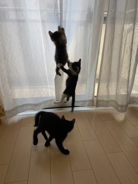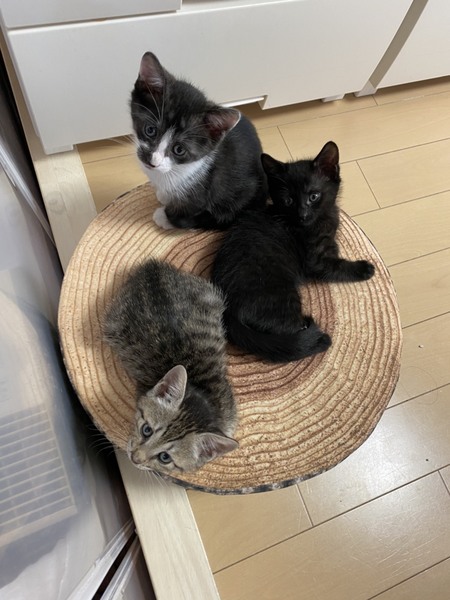 | 特徴(性格など) | グレ太郎(濃いグレー白♂)ボスの風格あり! キジっこ(キジ♀)おっとりかわいい女の子 くろっこ(黒♀)良く寝る人懐こい女の子 お届けは、千葉県我孫子市から車で一時間くらいまで(要相談)です。 子猫の様子は、ブログやインスタグラムに載せています。 ブログ https://ameblo.jp/abk-nekotomokai/ インスタグラム https://www.instagram.com/nekotomokai/?hl=ja 総じて、みんな元気いっぱいです。 兄妹で遊んだりくっついたりしているので、2匹セットで希望してくださる方を優先します。 |