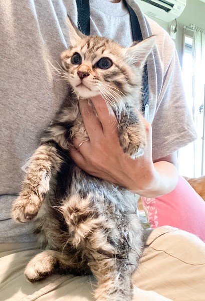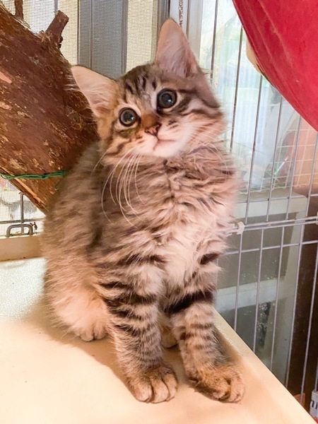 | 特徴(性格など) | ビビり「パピコ」くん♡ まだまだ自分からスリスリ甘えられないけど、好奇心旺盛マイペース♪ 毎日のブラッシングも、ビビりながらだけど満更でもない? じっくり時間をかけて頂ければ、きっと甘えん坊になる予感♪ 現在、ドライフードを置き餌として、栄養補給のため、一日2回程度のパウチを与えています。 <推定誕生日:5月始め> |