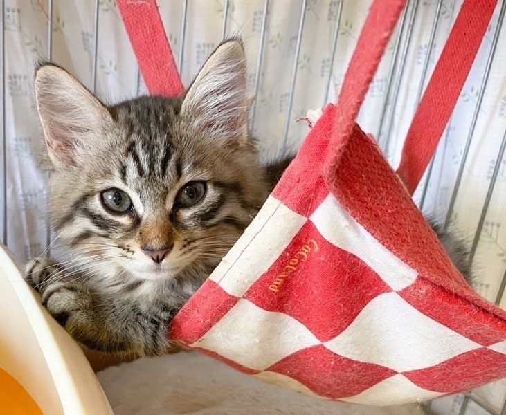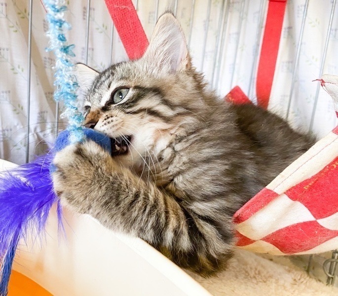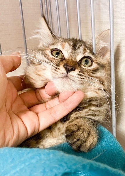 | 特徴(性格など) | まだまだビビりだけど、好奇心旺盛な「パルム」ちゃん♡ 玩具おもしろいっ♪ナデナデも満更でもないっ♪なシャイな女のコ じっくり時間をかけて頂ければ、きっと甘えっコになる予感♪ 現在、ドライフードを置き餌として、栄養補給のため、一日2回程度のパウチを与えています。 <推定誕生日:5月始め> |