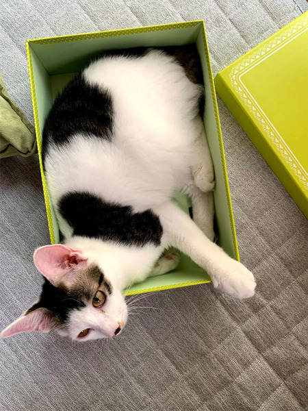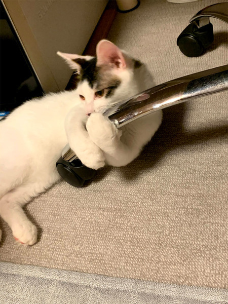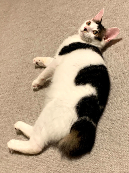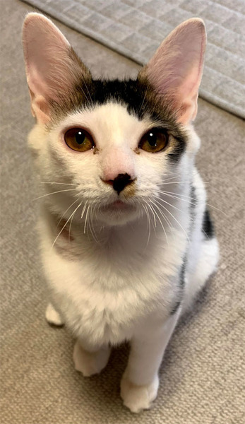 | 特徴(性格など) | とても懐っこく人が大好きで、すぐにくっついてきます。 好奇心旺盛で、ひとりでおもちゃで遊ぶことも、他の猫と遊ぶことも好きです。 元気いっぱいの男の子です。 夜は人にくっついて寝ます。 毛が柔らかくフワフワです。 |