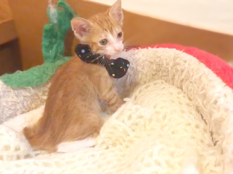 | 特徴(性格など) | かわいい盛りです。 これからまだまだやんちゃんになるのか、どんな性格になるのか楽しみです。 色んな仕草、行動がかわいいです。 是非しまくんに会いに来てください。 元気にしています。 ふやかしたフードやウエットフードを食べています。 写真撮影の時は目が少しショボショボしていました。 預かりボランティアさんが点眼をしてくれています。 エイズ白血病検査、ワクチンはできる体重になりましたらします。 |