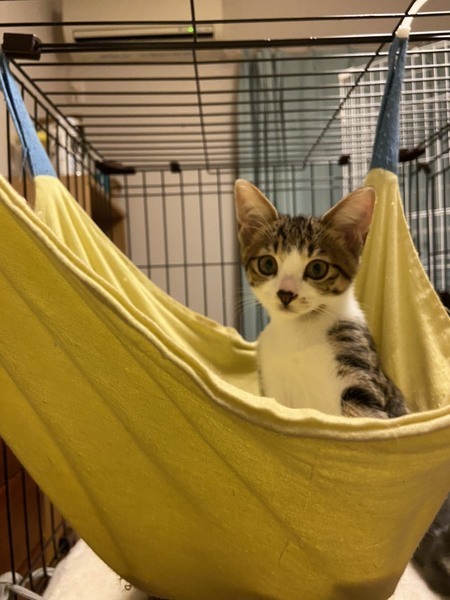 | 特徴(性格など) | 2020.5.5生まれ(推定) 毛色:キジ白 キジ白だけど、鼻が少し黒いので何とも言えない可愛いお顔をしています。 ちょっとビビリな性格だけども、好奇心旺盛で、いつも活発に遊ぶ可愛い男の子です。 保護当時は下痢が続いたものの、 食欲旺盛でお薬も難なく飲ませられ、元気いっぱいの子達です。 4兄妹でいつも元気に運動会を開催しています♪ |