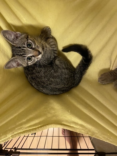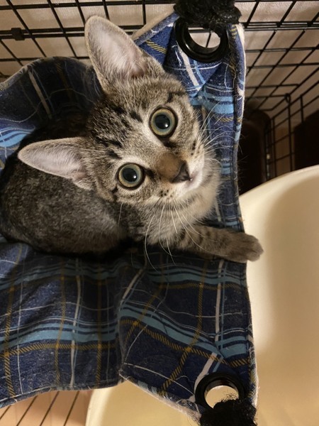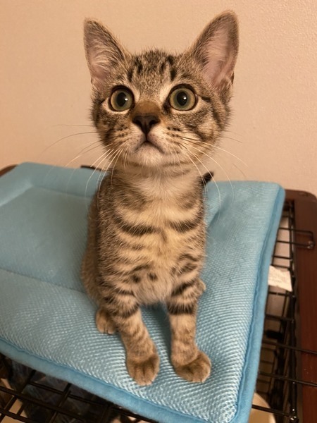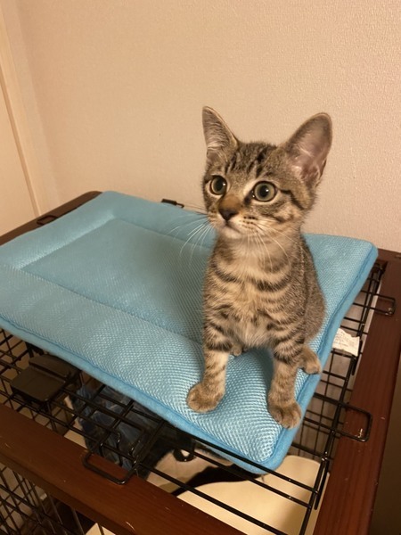 | 特徴(性格など) | 2020.5.5生まれ(推定) 毛色:キジトラ 兄妹猫のわらびとそっくりな女の子。 真っ直ぐな尾尻の美人さん。 性格はおっとり、おしとやか。 いつも微笑んでいるような可愛い子です。 保護当時は下痢が続いたものの、 食欲旺盛でお薬も難なく飲ませられ、元気いっぱいの子達です。 4兄妹でいつも元気に運動会を開催しています♪ |