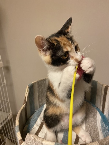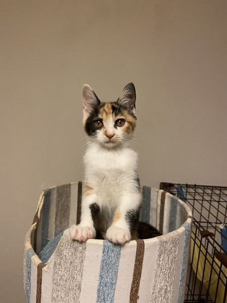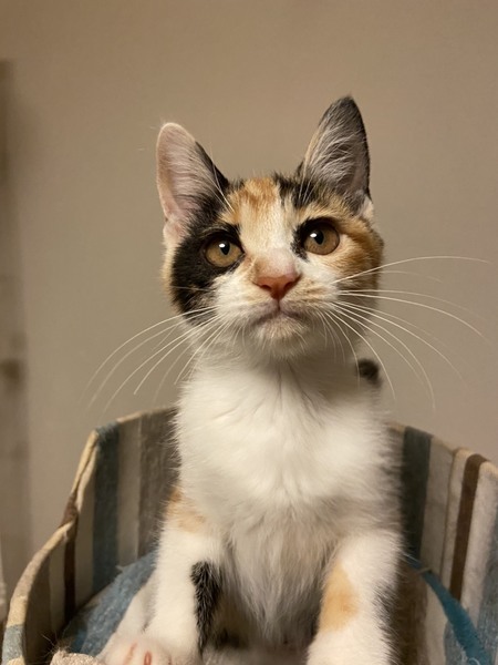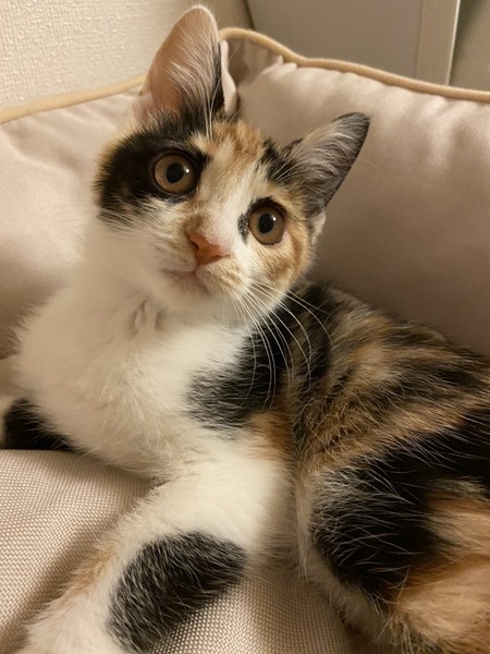 | 特徴(性格など) | 2020.5.20生まれ(推定) 毛色:三毛 とっても元気いっぱいで男勝りな女の子。 おもち4兄妹と一緒にするとずっとバトル!! 小さいけれど、パワーは最大。 人間のお兄ちゃんに溺愛されて育っています。 寂しい時はピーと大きな声で鳴くので、ピーちゃんと呼ばれています。 |