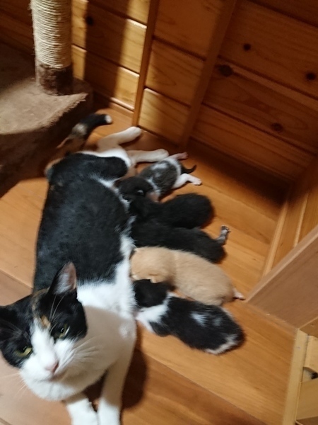 | 里親募集する理由 | うちの近くで野良猫が子供を生んでいたため保護しました。うちではかえないため募集してぃす。子猫は里親がみつかりましたがははねこの里親を募集しています。 | ||