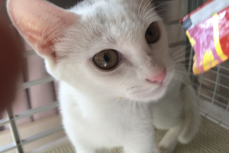 | 特徴(性格など) | 白い毛でおでこにうっすらグレーがあります。尻尾がピカチューみたいです! はじめは怖がるかもしれませんが、 かまってほしい甘えん坊❤️ |