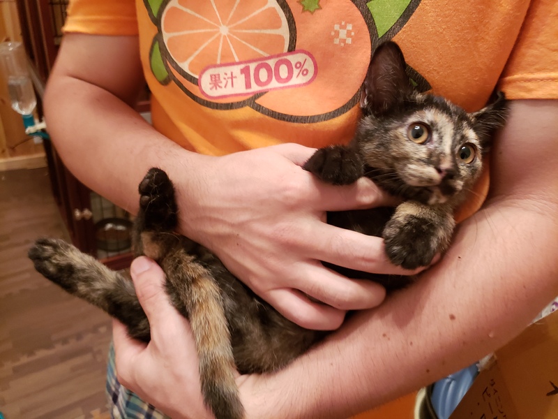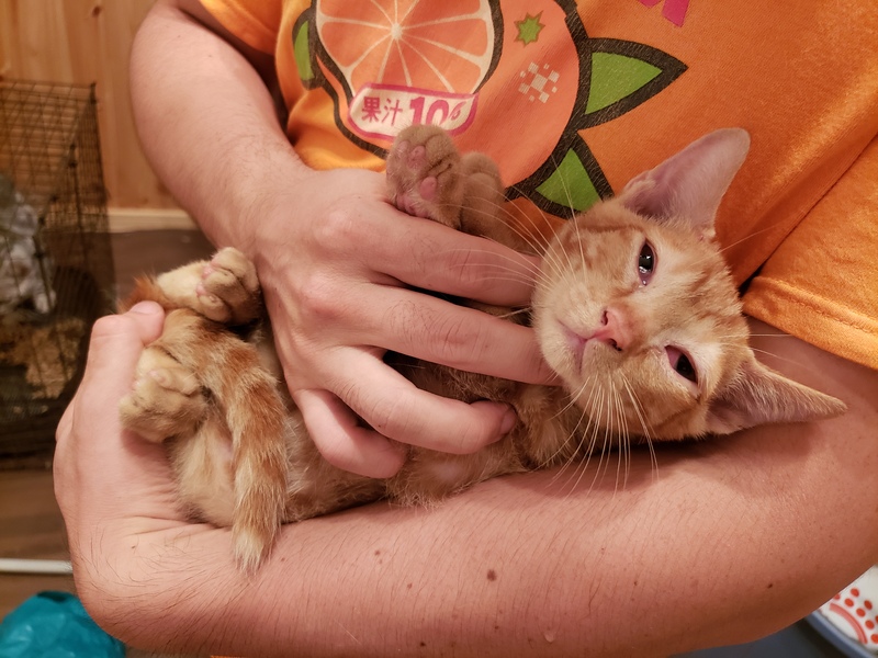 | 特徴(性格など) | 茶トラオスとサビ猫メスです。しっぽが真っ直ぐ長くきれいです。みんな人懐っこい元気な子猫です。茶トラ1匹が結膜炎て目薬治療してます。治療続けて下さる方は引き取った後もお願いします。 | ||