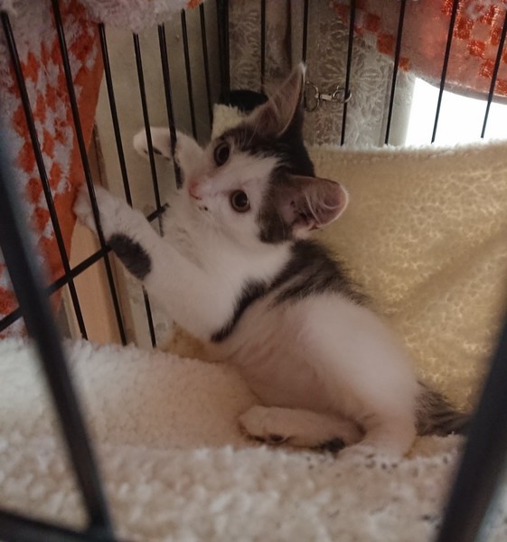 | 特徴(性格など) | 保護宅のブログ↓ https://ameblo.jp/coco-mopushi/ 呼び名「まる」 エイズ・白血病血液検査 陰性 便検査済み ノミダニ駆除済み トイレしつけ済み ドライフード 穏やかで明るい性格の活発な女の子です。 人との生活には慣れました。 他の保護猫とも、上手に遊べています。 抱っこも大好きで、「ゴロゴロ」甘えてきます。 良く寝て、良く遊んで、元気に成長中。 母猫が半長毛のようなので、まるちゃんも、尻尾と胸の毛がフサフサしています。 爪切りもおとなしく切らせてくれて、猫初心者の方でも飼いやすい子猫だと思います。 |