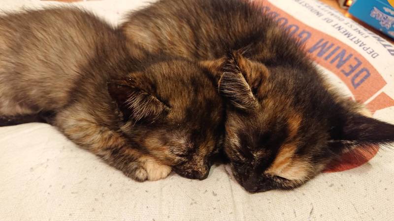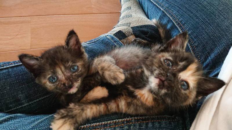 | 特徴(性格など) | ふたり共、弱視ですが生活に支障はありません。 少し距離感が掴みにくい様ですが 手が掛かる事はありません。 ジャラシをゆっくり動かせば遊びます。 もうじき生後2ヶ月位です。 人が話し掛けるとじぃーっと顔を見つめて来ます。 ○仮名) はなび お顔がツートンの子です。 ○仮名) ごま 小顔でハチが大きくお鼻の辺りが黒っぽい子です。 手足に、強く茶トラ模様が出ています。 ふたり共、めちゃくちゃ甘えん坊です。 はなびは、膝がとても好きです。 ごまのうしろをはなびが後追いします。 ごまが見えなくなるとはなびが鳴きながら探します。 毎日、仲良く過ごしています。 |