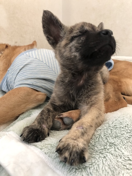 | 里親募集する理由 | 大阪の河川敷で子犬兄妹3匹で捕獲され保健所に収容されました。 譲渡にならないと判断されて、処分になるところでした。 |