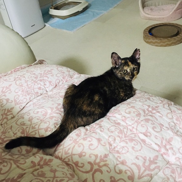| 特徴(性格など) | 綺麗な さぴ三毛の女の子 性格はお利口で活発なお嬢さんです。ボールで一人遊びも出来ますし、ジャンプもなかなかのものです! トイレ、爪研ぎ完璧 仔猫らしい愛くるしいサビィちゃんです 抱っこもできます! 今 同じくらいの 預かり子猫ちゃんとも 仲良くしています。 |