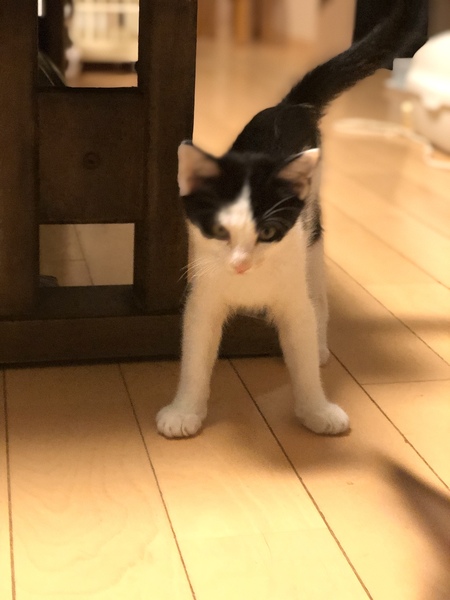 | 特徴(性格など) | 仮名 フォー君 性別 男の子 年齢 獣医推定2ヶ月 性格 甘えた。 特徴 白黒。まっすぐ尻尾。 その他 1回目便検査スミ。ブロードラインスミ。ワクチン接種予定。 |